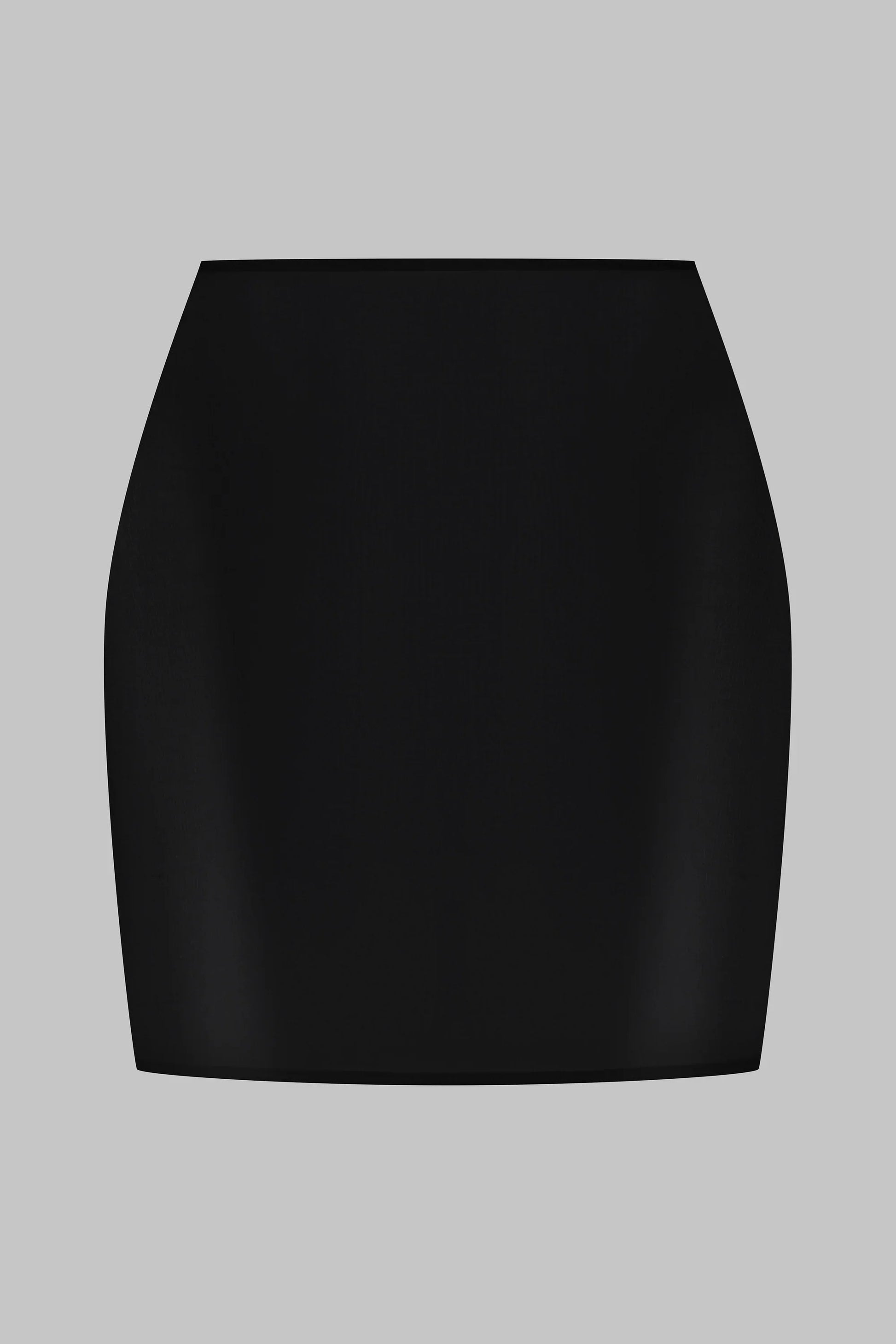 • Mini-jupe en microfibre jersey noire semi-transparente