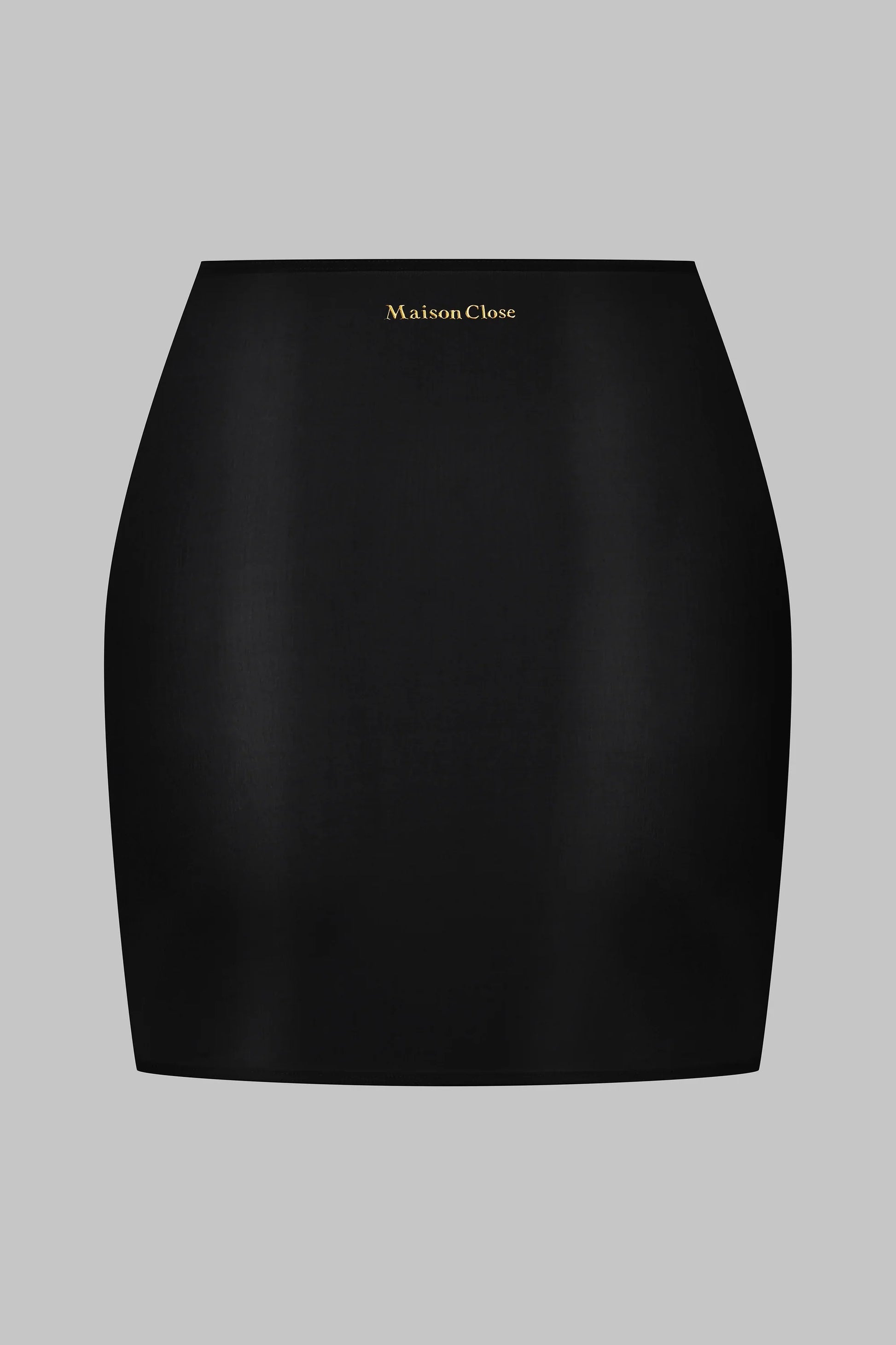 La mini-jupe Double Sens joue avec la frontière entre lingerie et prêt-à-porter. Sa microfibre jersey, fine et subtilement brillante, dévoile juste ce qu’il faut à travers une transparence maîtrisée.