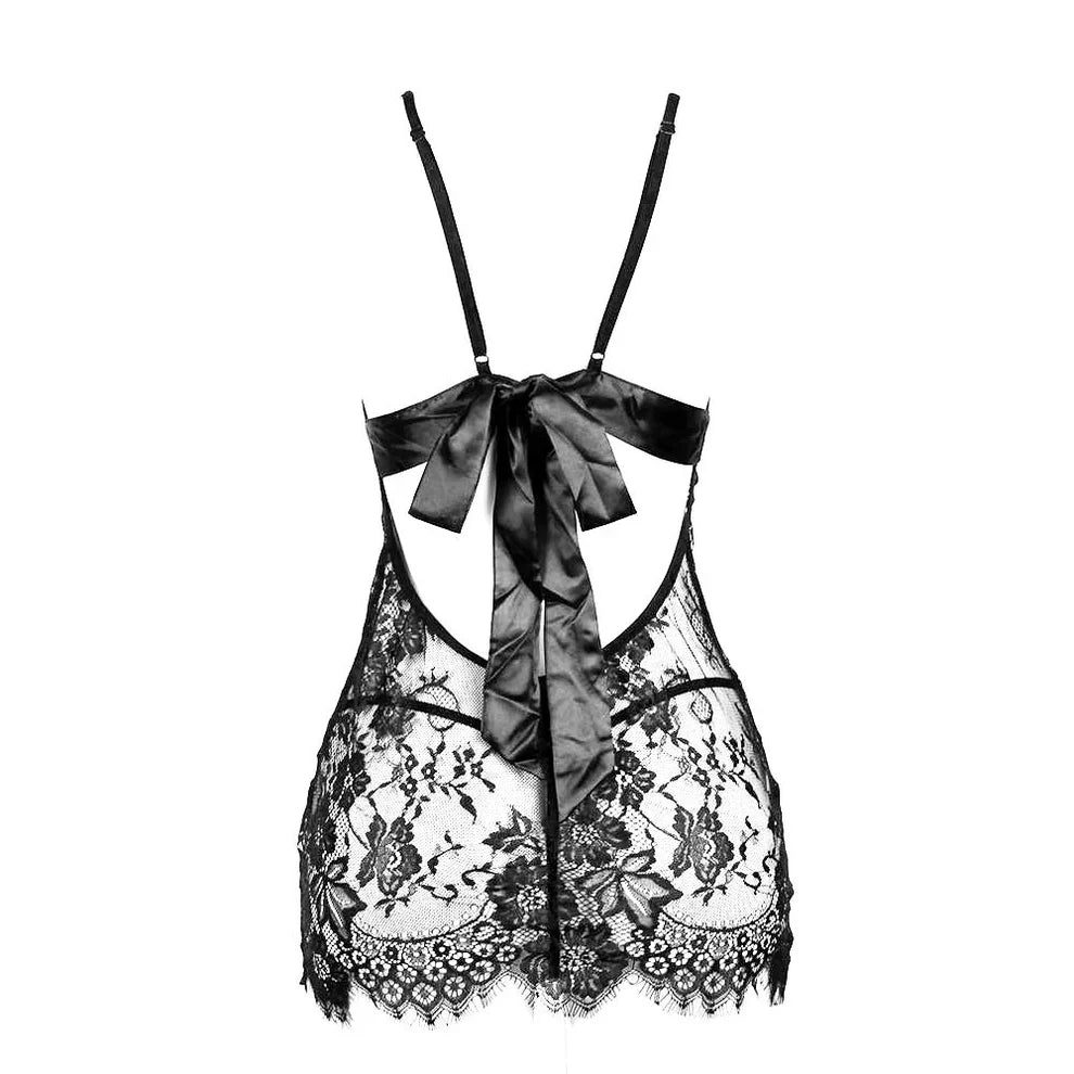 Cette nuisette séductrice allie raffinement, dentelle et transparence pour sublimer tes courbes tout en gardant une part de mystère.