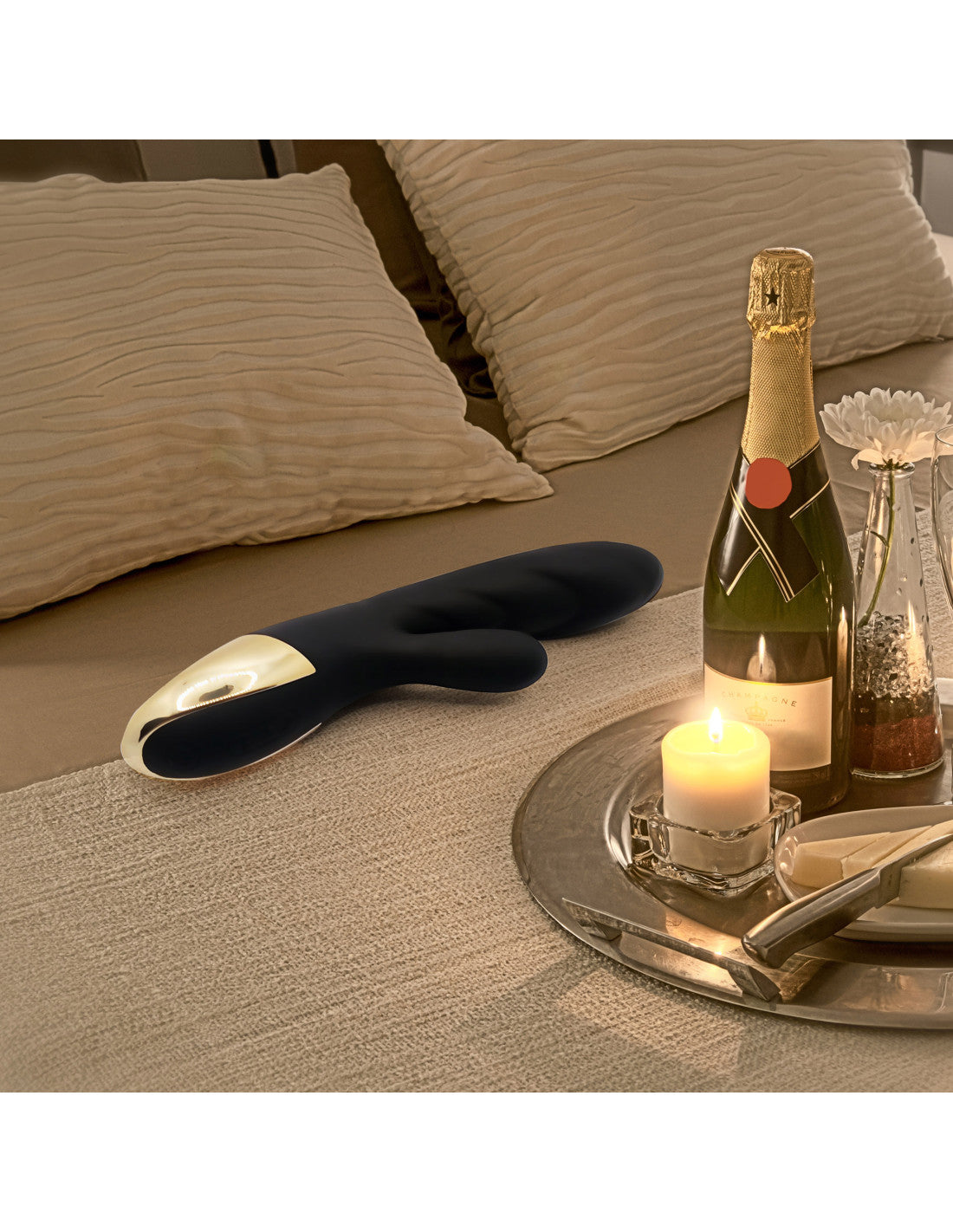 - …et il a tous les avantages d’un rabbit haut de gamme : rechargeable (en 1h pour la même durée d’utilisation), résistant aux éclaboussures pour un nettoyage simplifié, garanti 2 ans pour en profiter longtemps, et tellement beau avec sa poignée dorée et son habit de velours noir...