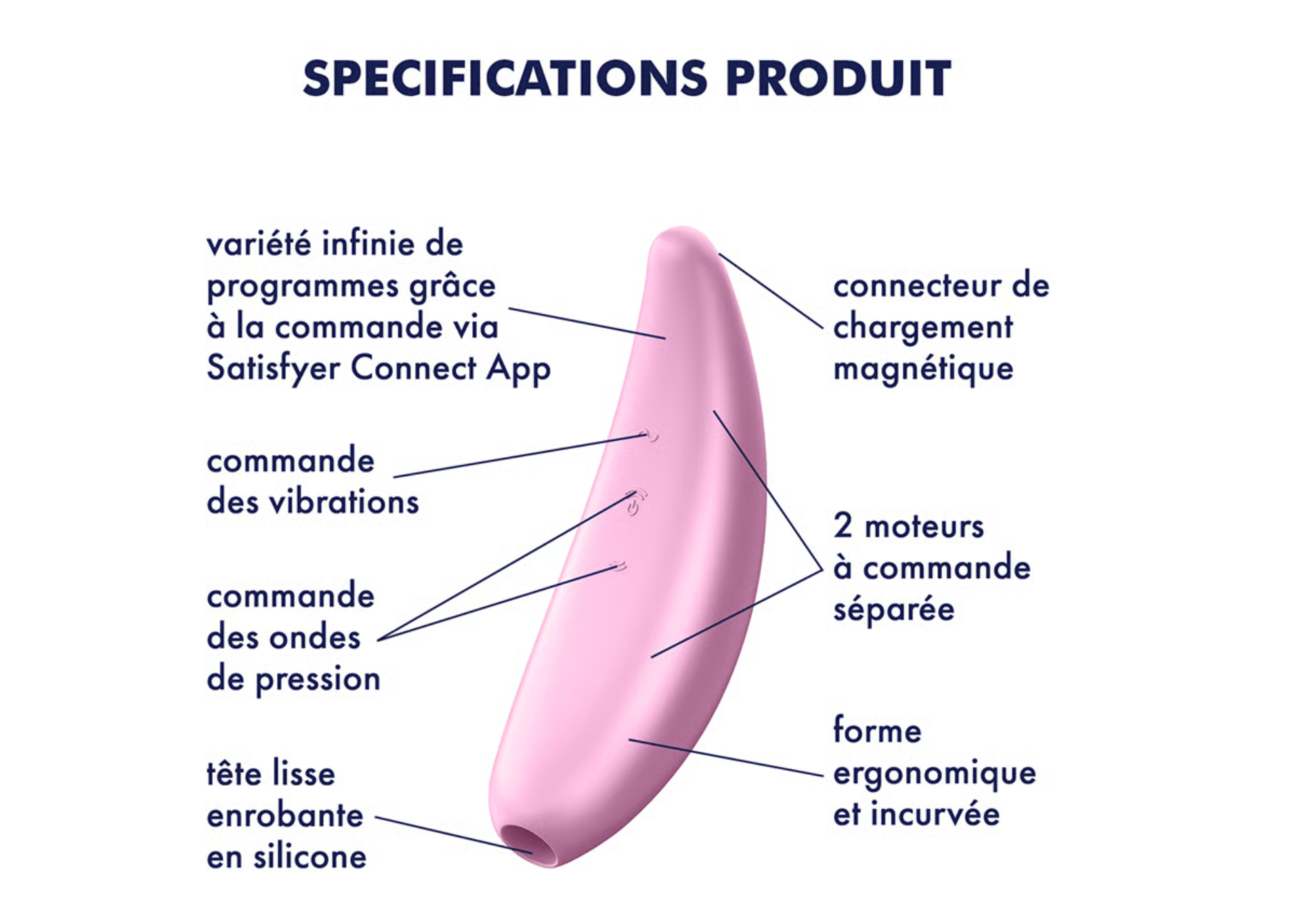 Le Satisfyer Curvy 3 Connect App est pensé pour offrir une stimulation clitoridienne intense et variée. Il associe des ondes de pression sans contact à des vibrations profondes pour faire monter le plaisir rapidement, tout en douceur ou avec plus de puissance selon ton envie.