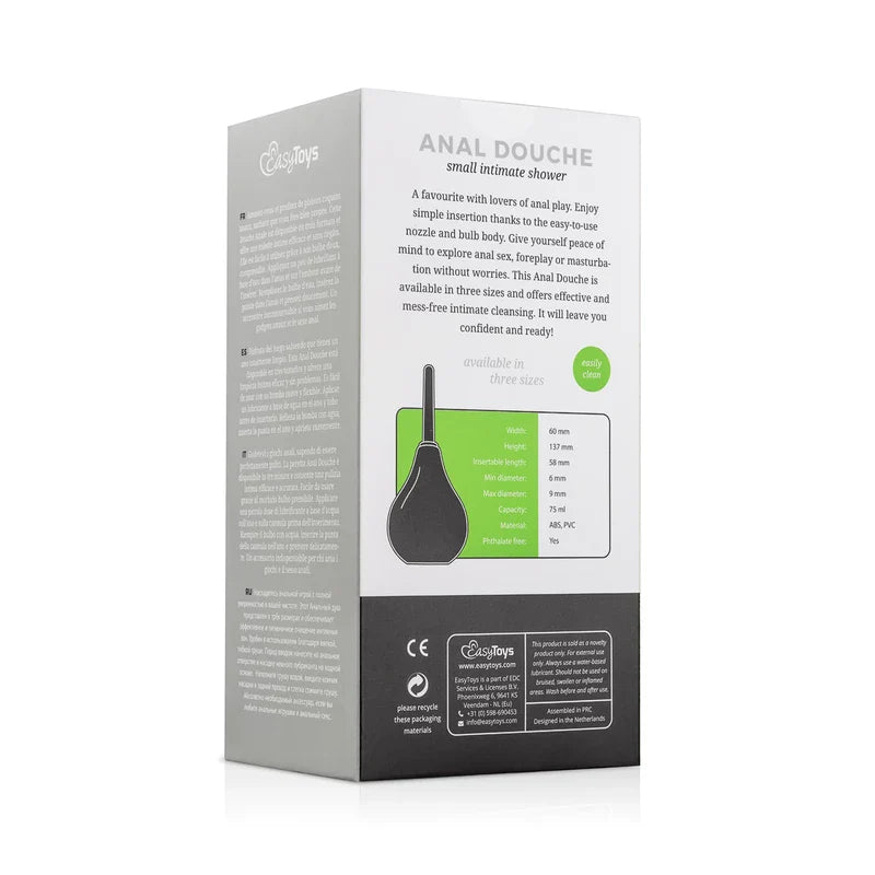 La préparation idéale pour tes jeux anaux. Compacte, simple et efficace, cette douche anale taille S permet un nettoyage intime en profondeur. Son embout fin assure une insertion facile et confortable, pour te laisser totalement serein·e avant tes moments de plaisir.