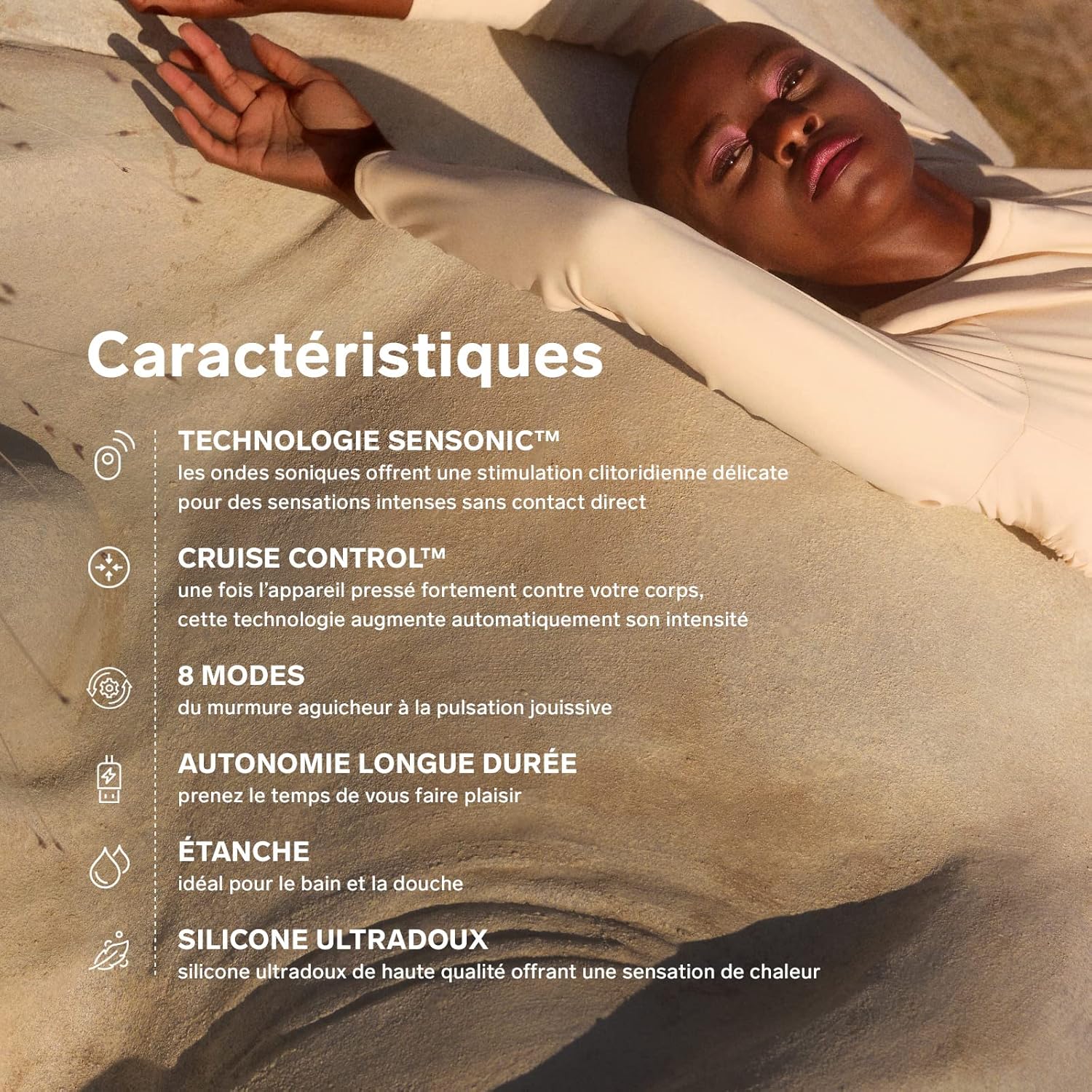 - Technologie Sensonic : La stimulation sans contact sur le clitoris, inspirée du Sona 2 de Lelo, pour une excitation unique.