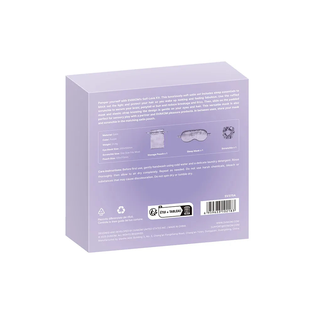 Offre-toi un moment de self-love tout en douceur avec ce duo satiné signé Svakom. Le masque de nuit épouse le visage pour bloquer la lumière et favoriser un sommeil profond ou enrichir les expériences sensorielles, tandis que le chouchou assorti maintient les cheveux sans les marquer.
