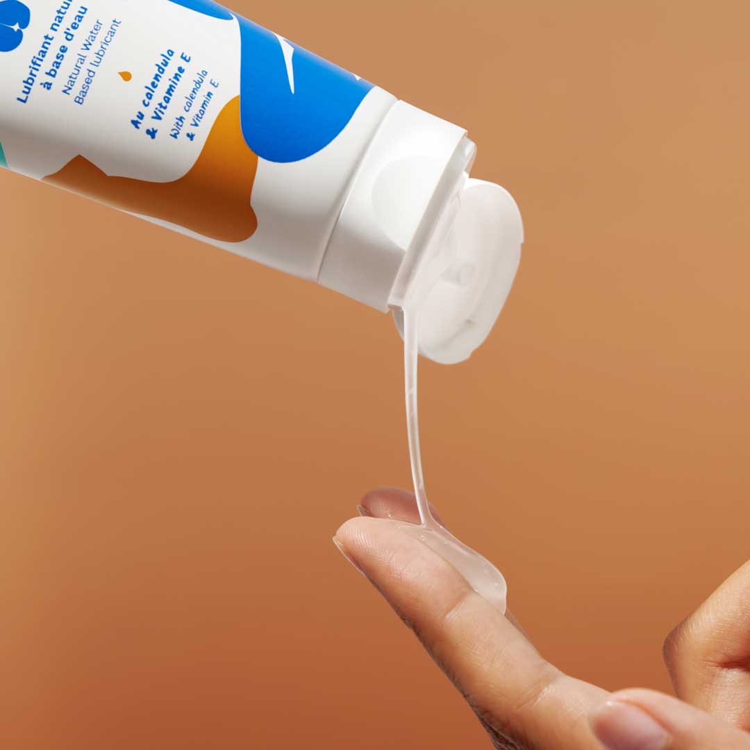 - À base d’eau, compatible préservatifs et sextoys