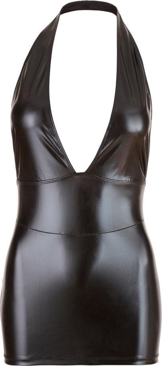 Cette mini-robe wetlook noire est pensée pour marquer les esprits. Sa coupe moulante épouse parfaitement la silhouette, tandis que l’encolure plongeante et le dos entièrement nu créent un contraste ultra sensuel.