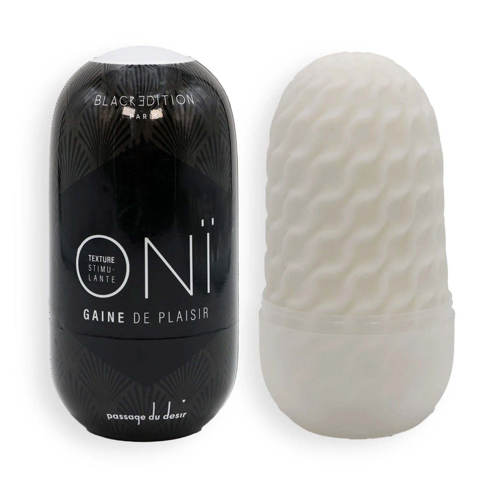 Onï, la gaine de plaisir Black Edition, est pensée pour stimuler à la fois le gland et la verge grâce à une texture souple et des picots placés pour maximiser les sensations. Son élastomère très doux épouse la morphologie et reprend toujours sa forme, pour un confort optimal.