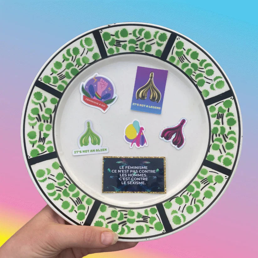 Le Mini-Sachet de Stickers Féministes du Gang du Clito est de retour pour illuminer votre quotidien et répandre un peu de sororité visuelle 💫. Ce set contient 7 stickers aux designs variés, imprimés sur des papiers de qualité — holographiques, pailletés, ou effet miroir — pour un rendu à la fois fun et affirmé.