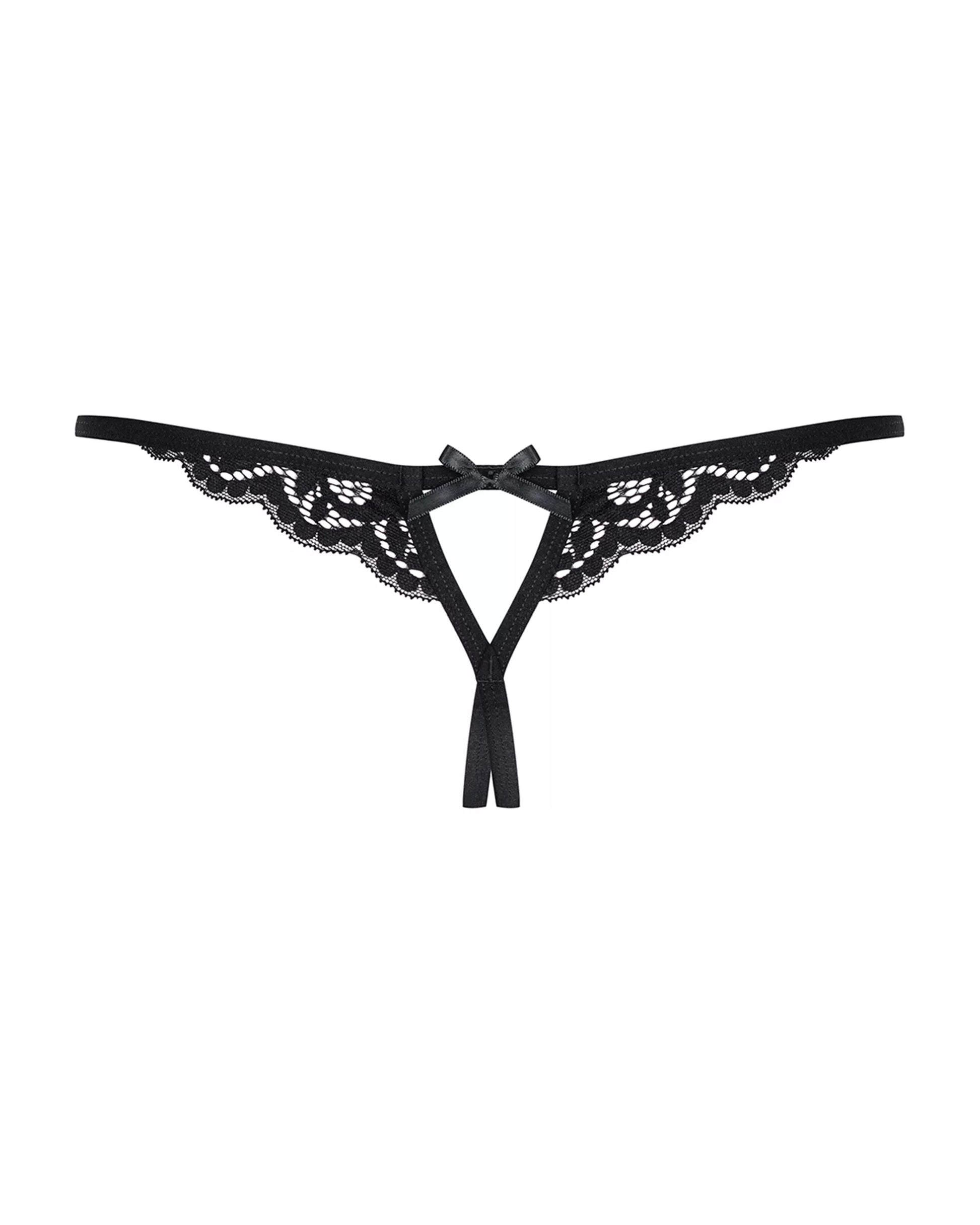 Un string en dentelle ouvert qui joue la transparence avec audace et élégance.