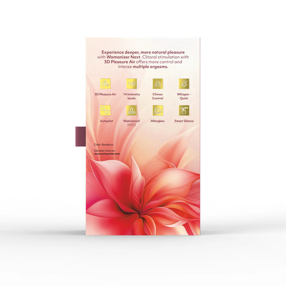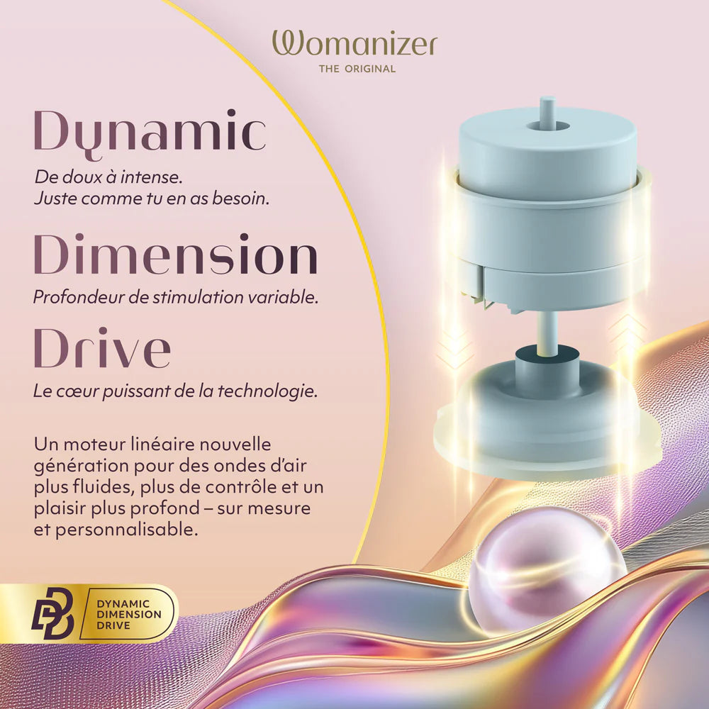 Le Womanizer Next repousse les limites du plaisir grâce à sa nouvelle technologie Pleasure Air 3D. Les pulsations d’air massent ton clitoris sans jamais le toucher directement, mais avec une profondeur et une richesse de sensations inédites. Les vagues d’air sont plus fines, plus précises, plus intenses — un vrai changement de dimension.